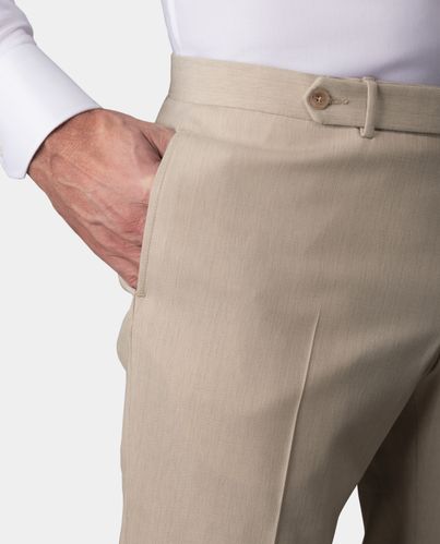 Slip on these luxuriously sleek light brown suit pants that feature a wool stretch blend. In these suit pants, you can handle dynamic days and nights as you move from work to play. Your style never looked better, with performance fabric handcrafted to last.