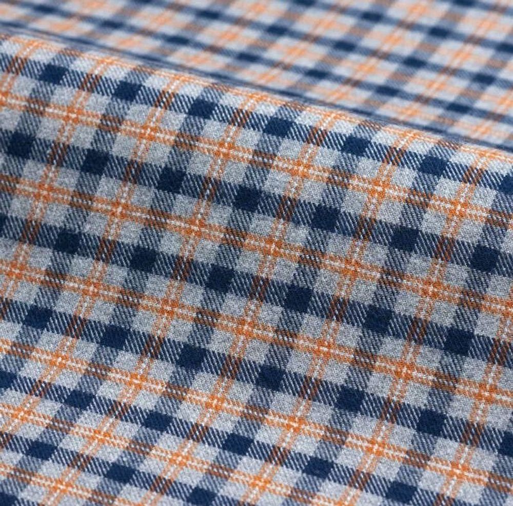 Entspanntes kariertes Flanellhemd in Grau und Orange, dessen gebürsteter Stoff weich auf der Haut liegt und in den kälteren Jahreszeiten angenehm warm hält. Eine ausgezeichnete Wahl für jeden Tag! Maßgeschneidert.