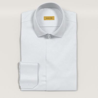 White business shirt in a white twill weave with a subtle and appealing luster. This is the perfect dress shirt if you prefer a soft and flexible dress shirt, and works just as well for work as for more special occasions. Made to your measurements.