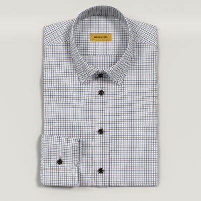 Cardenend, beige Maßgeschneiderte Herrenhemden aus Baumwolle mit beige-blauem Karomuster