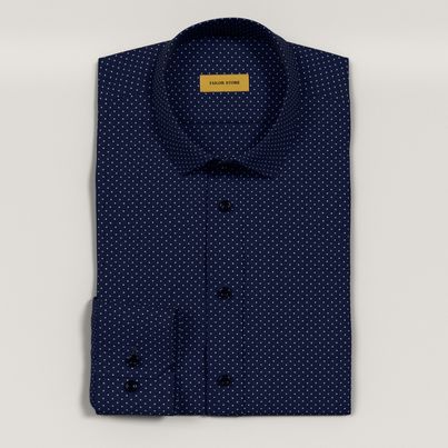 Tissu en popeline blanche à petits points bleus et finition mate.