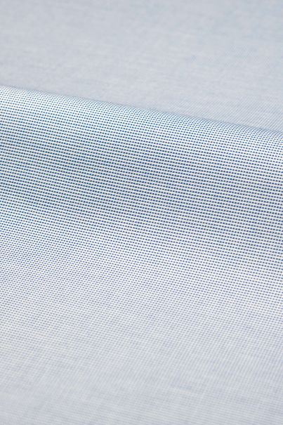 En mycket fint vävd dobby med en tunn rand i vitt och marinblått. Tillverkad i 100 % bomull.