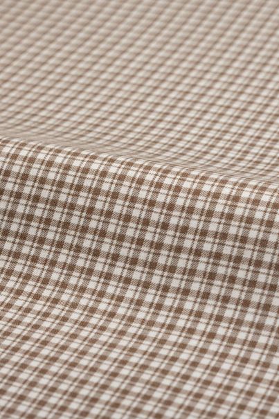 Flanellstoff mit Fensterkaro-Muster in Weiß und Braun. Fühlt sich superweich an und besteht aus 80 % Baumwolle und 20 % Wolle.