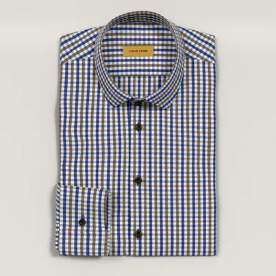 Classic brown poplin shirt with a gingham checked pattern. Wear it for workdays or in a more casual setting. Made to your measurements.