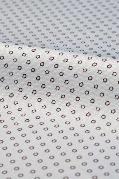Lightweight poplin fabric with understated light-blue printed floral pattern. The relaxed and airy material is perfect for warmer seasons. Made of 100% cotton.