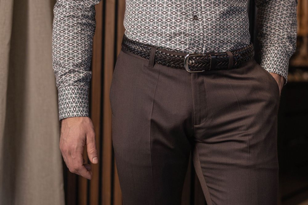 Dress shirt: Winfield, greenery, Suit pants: Stockholm, brown