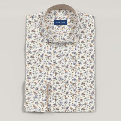 Men’s Custom Satin Cotton Shirt in Light Blue and Brown Print