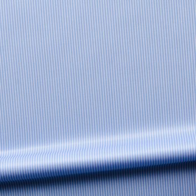 Very easy ironed fabric in finely woven twill. A classic white stripe on a dark blue base with great luster. Made in 100% cotton.