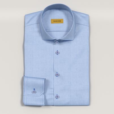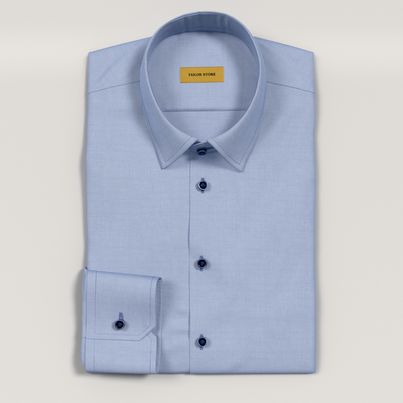 A fine French oxford weave with a nice and exclusive structure. Nice light blue color with a soft and comfortable feel. Made in 100% cotton.