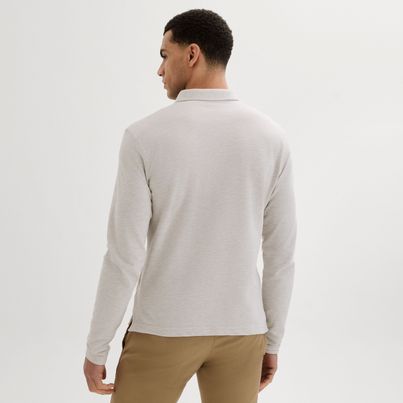 Our long-sleeved polo shirts are made of 100% pima cotton. Which gives them a silky texture and a subtle sheen that gives them a refined and sophisticated look. The cotton fibers are long and strong, making the fabric incredibly soft, durable, and resistant to pilling. Pima cotton is also highly breathable, making it perfect for year-round wear, and it retains its shape even after multiple washes. You'll feel the difference in quality when you wear one of our long-sleeved polo shirts in pima cotton.